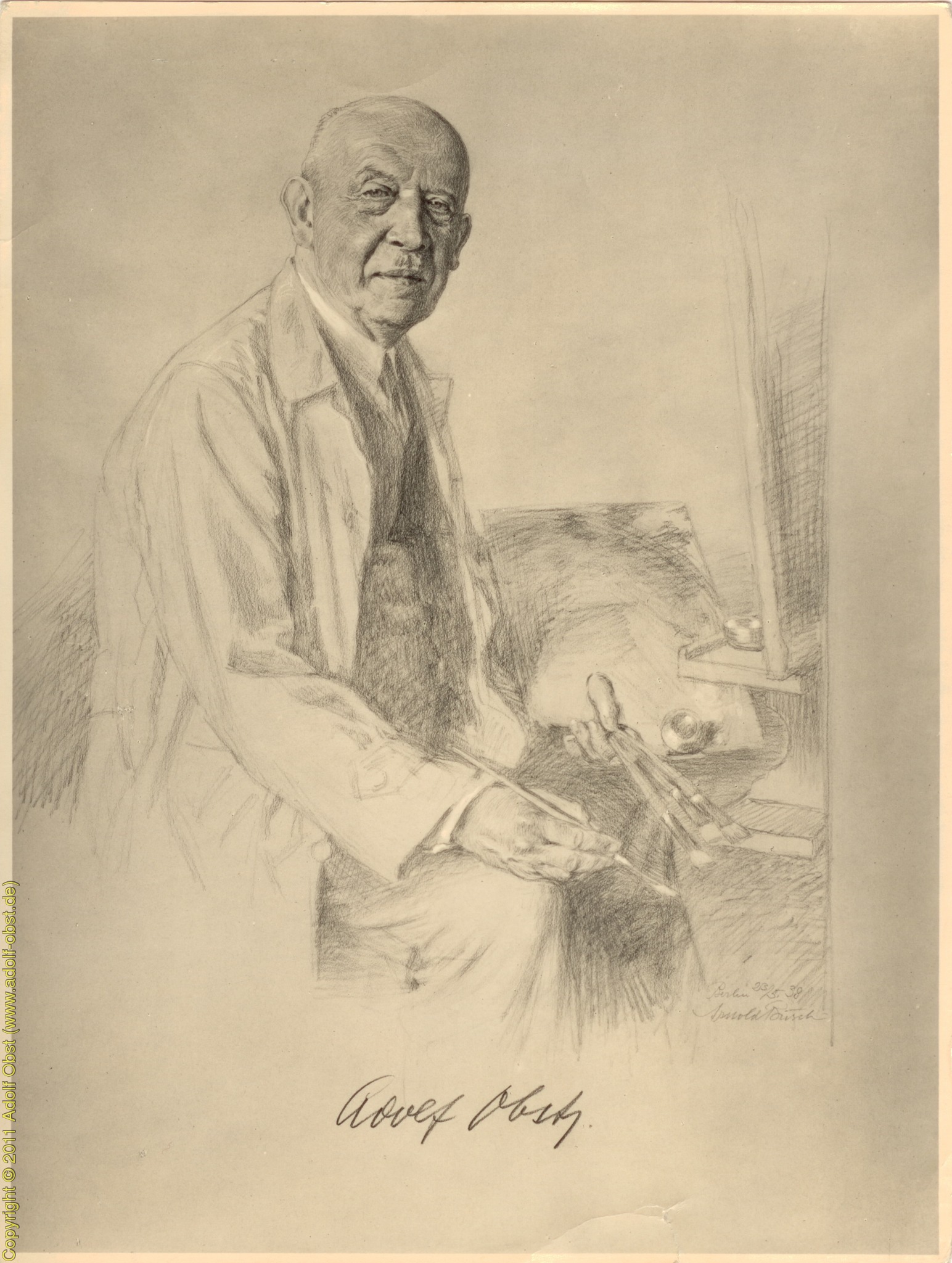Der Landschaftsmaler Adolf Obst wurde am 27. August 1869 als Sohn des Kirchenbeamten Heinrich Obst und seiner Ehefrau Auguste geb. Schmidt in Berlin geboren. Mit 14 Jahren trat er als Lehrling eine Ausbildung bei der Reichsdruckerei in Berlin an, wo er namentlich in Lithographie und Kupferstich Erfahrungen sammelte. Schon während dieser Ausbildung wurde ihm wegen seiner hervortretenden Fähigkeiten zur Malerei ermöglicht, in der Akademie für bildende Künste in den Klassen für Perspektive, Anatomie und Tiere zu hospitieren, was Gelegenheit bot, Pferde aus dem Königlichen Marstall zu malen.