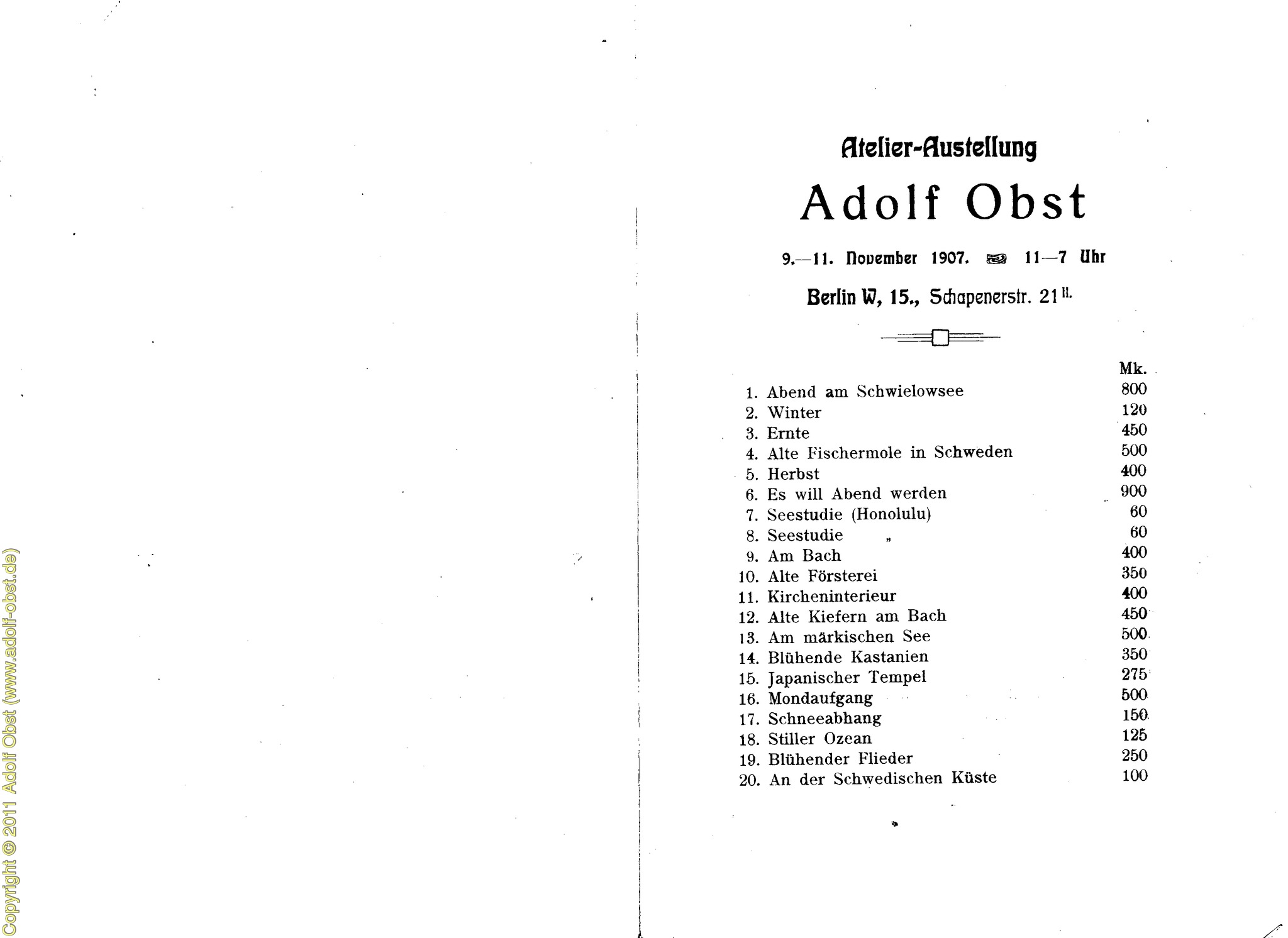 November: Atelier-Ausstellung Schaperstr. 21, aufgelistet sind 78 Gemälde.