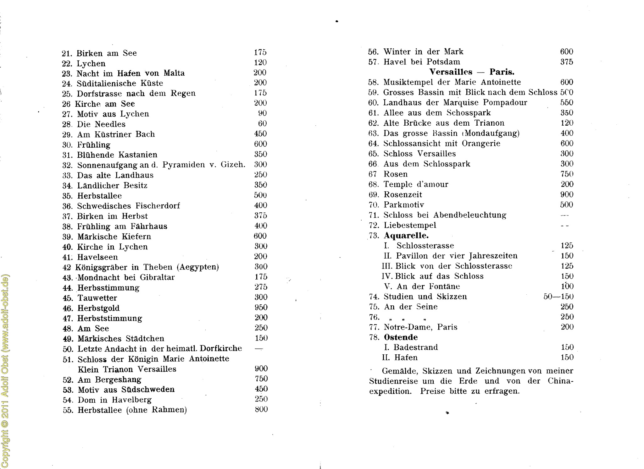November: Atelier-Ausstellung Schaperstr. 21, aufgelistet sind 78 Gemälde.
