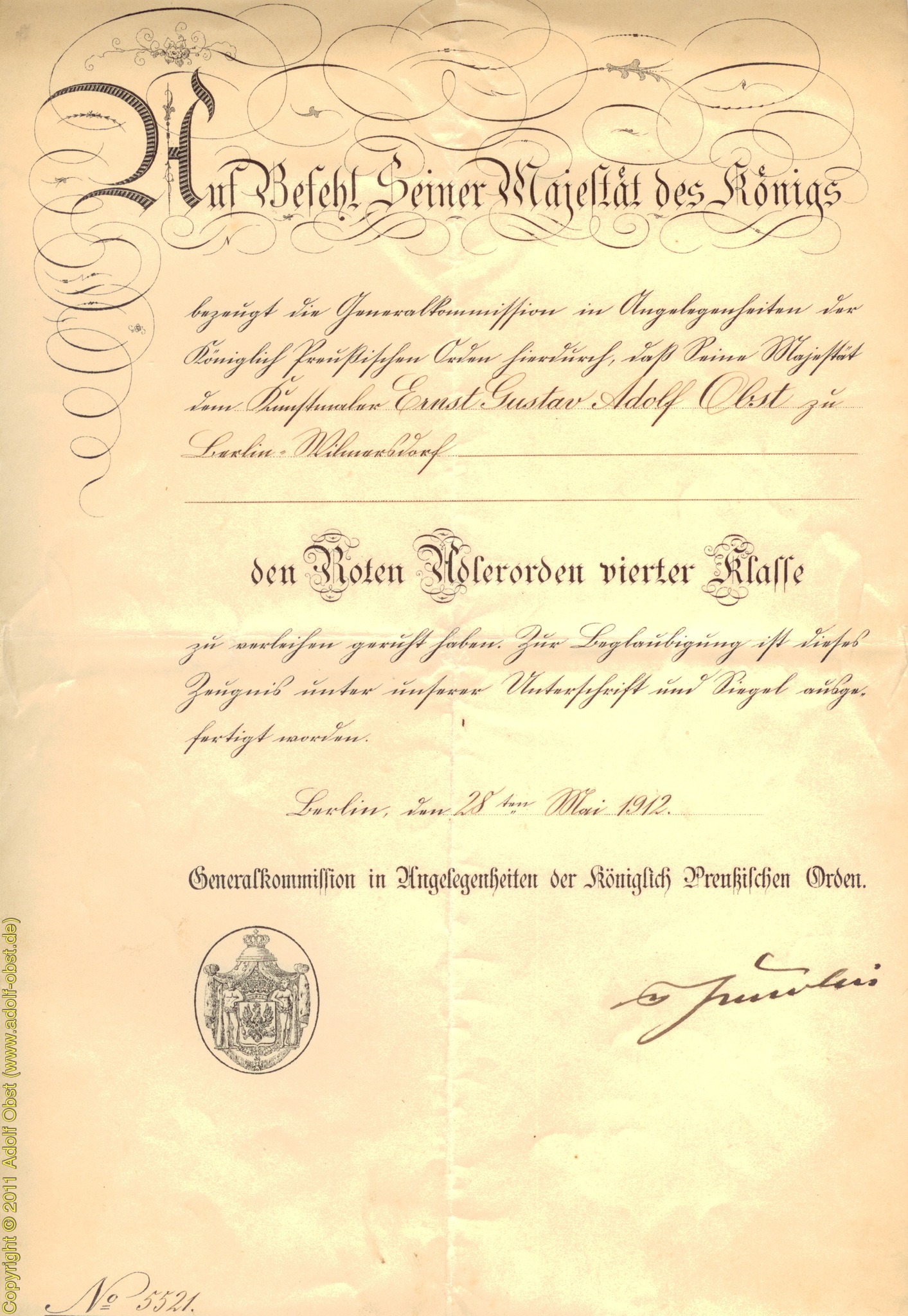 28. Mai: Verleihung des roten Adlerordens vierter Klasse.